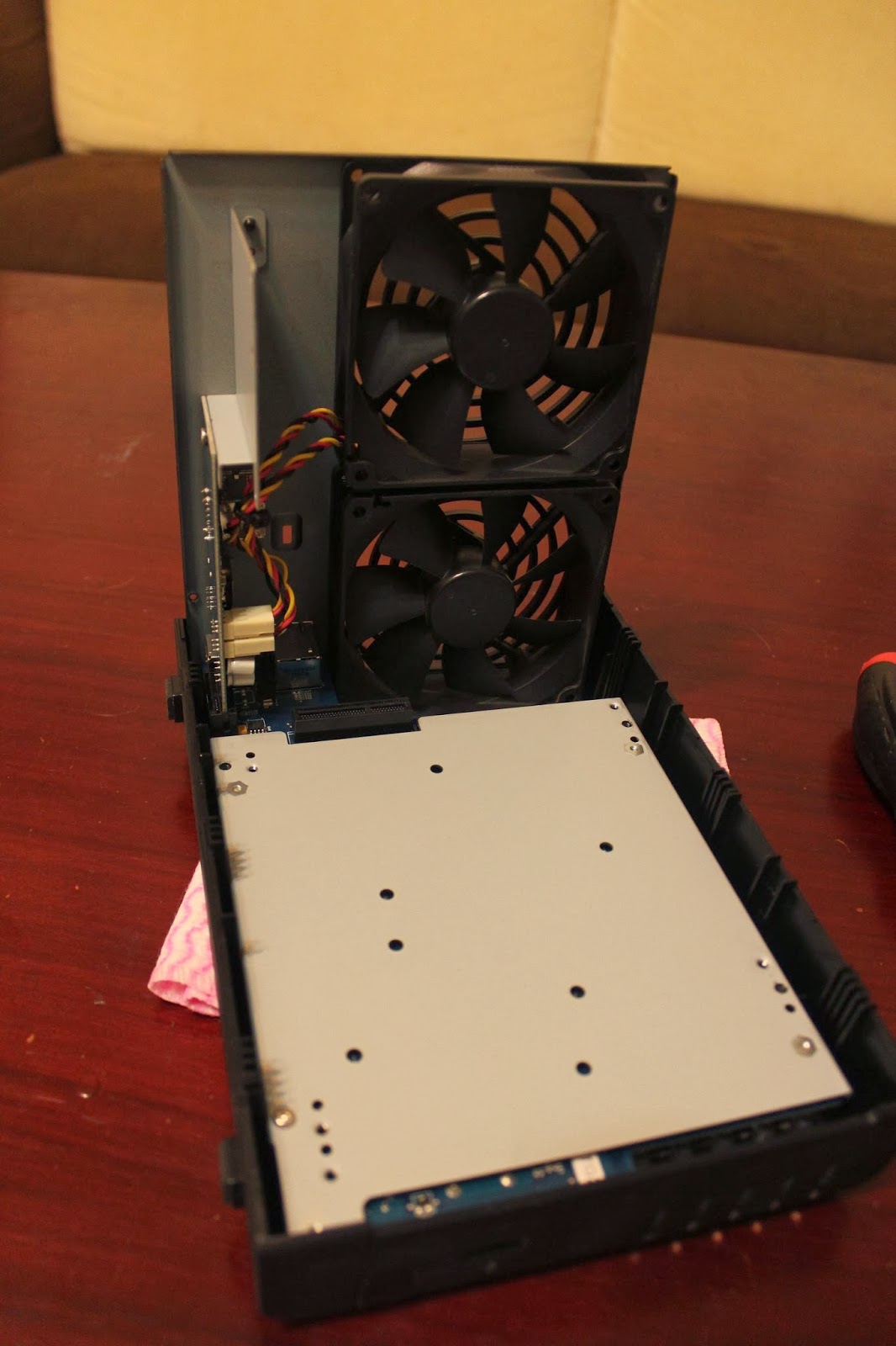 將殼拆下,裡面的硬碟架和一堆灰塵…XD